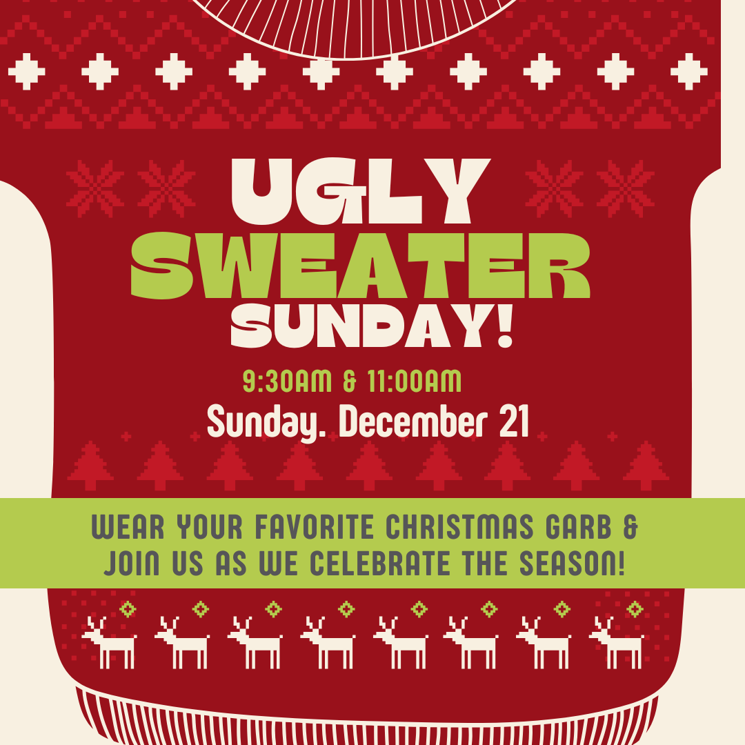 Wear your Christmas garb—ugly or beautiful, cozy or fancy—and come ready to celebrate the season with joy.